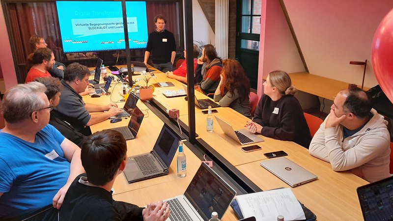 Noch wichtiger jedoch waren die Gespräche mit den anderen Teilnehmenden und der Erfahrungsaustausch – etwa mit Dr. Nico Nolden, der in seinem Input ein ganzes Spektrum an Möglichkeiten aufzeigte, inklusive einer kritischen Reflexion verschiedener Aspekte der Tools. Ebenso der Workshop Luanti + BLOCKALOT unter der Leitung von Chris Binder, in dem sich Verspieltheit, Technologie und pädagogisches Denken zu einem Ganzen verbanden.
